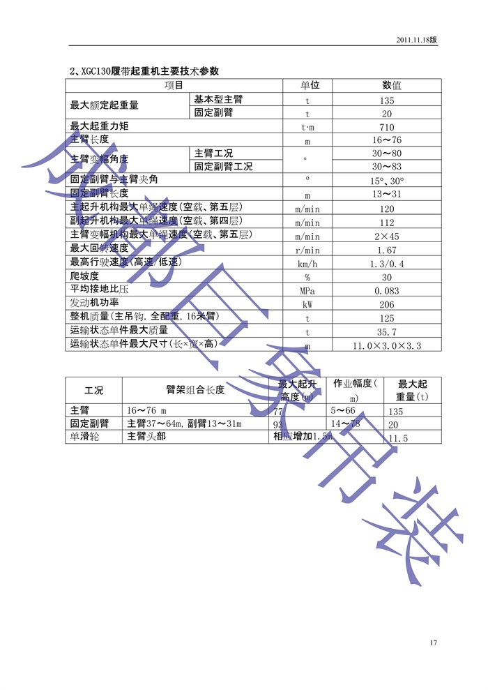 徐工履帶吊130噸性能表